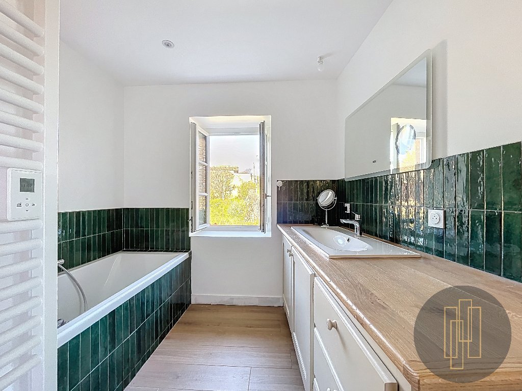 Au rez-de-chaussée, la maison se compose d'un hall qui dessert deux salons, une belle pièce à vivre d'environ 60m² avec cuisine ouverte et accès direct sur le jardin, une buanderie et deux pièces à finir d'aménager.
