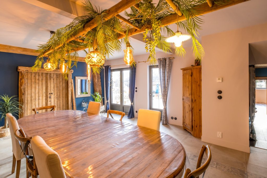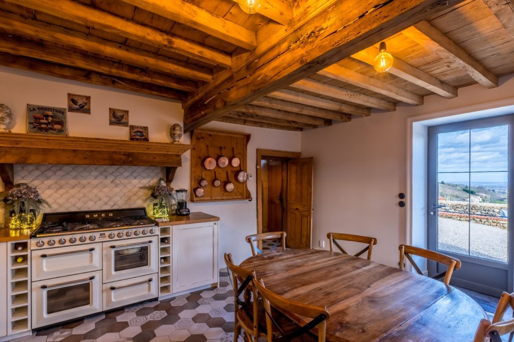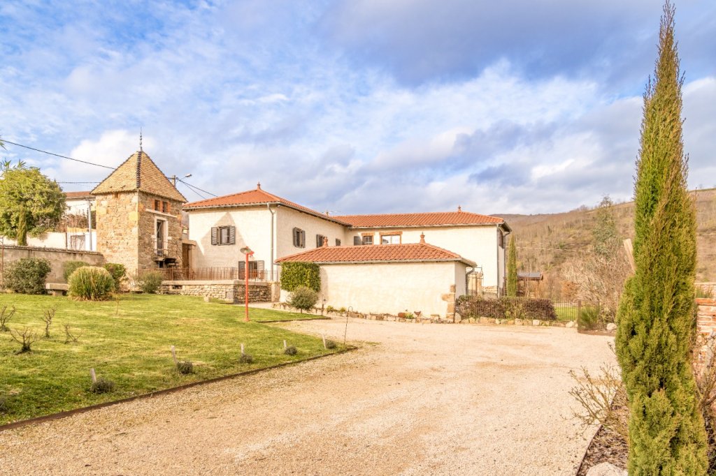 Exclusivité - A 45 Mn des portes de Lyon par A6 , A proximité des grands axes routiers, de la gare TGV et de l'aéroport, au abord d' un village typique du beaujolais , propriété de caractère de 258 m² sur un terrain d'environ 1 954 m² Implantée dans un environnement calme avec vue dégagée sur la chaine des Alpes.