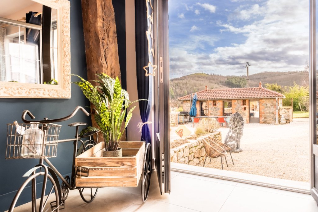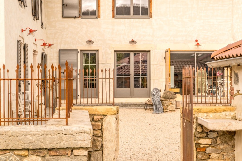 L'extérieur à été optimisé pour profitez de chaque espace : parking voiture, potager, jeux de boules, poulailler et une belle cour intérieur avec vue dégagée sur les vallons du Beaujolais.