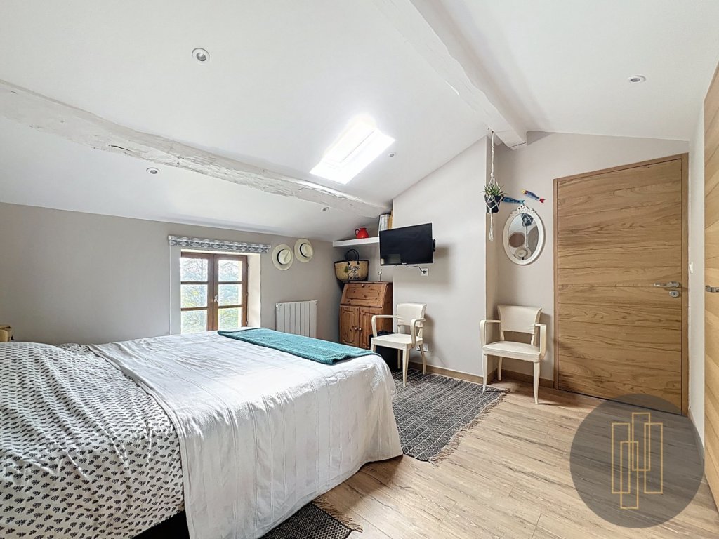 Un gîte indépendant de 32 m², pouvant être relié à l''habitation, comprend un séjour avec cuisine, un espace de couchage et une salle d''eau.