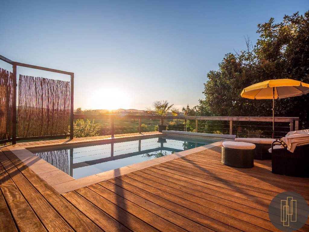 L'extérieur est tout aussi séduisant, avec deux terrasses, un préau et une cabane de jardin et la piscine exposé sud-ouest . Actuellement un clos dédié au poney trouve toute sa place dans cette propriété.