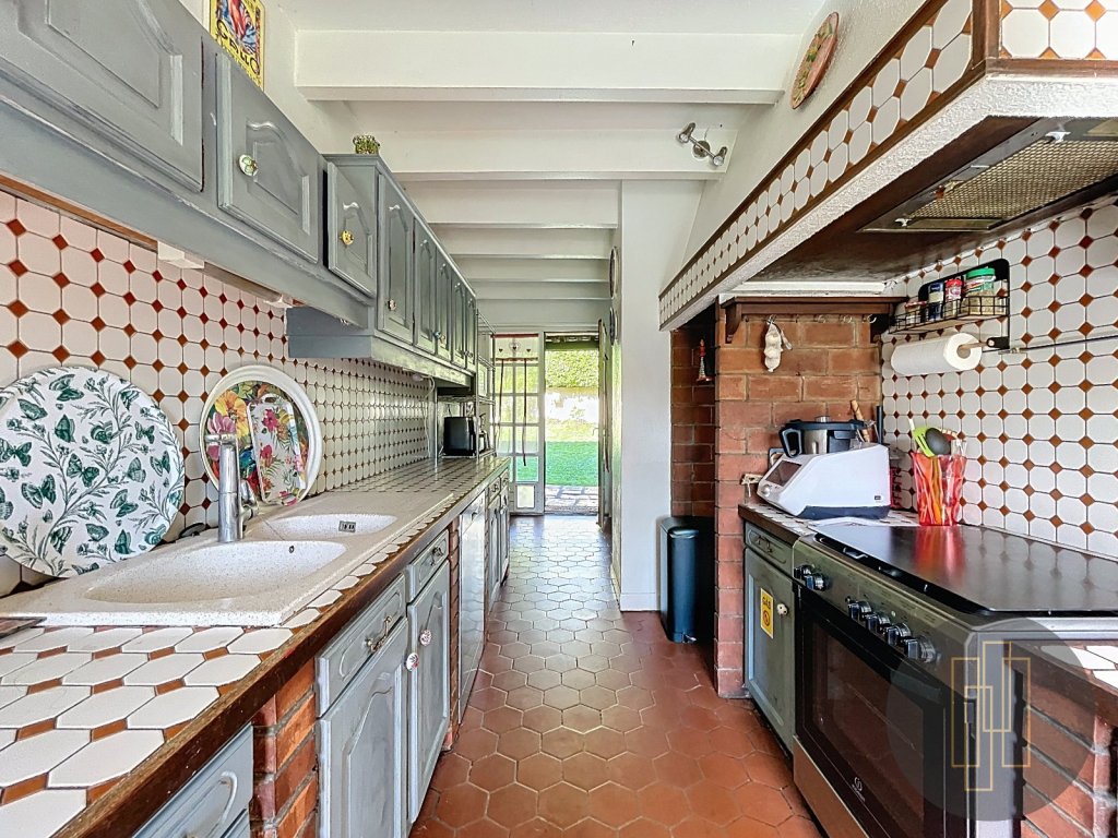 Le rez-de-chaussée s'ouvre sur une cuisine équipée, lumineuse et conviviale, en liaison directe avec un vaste séjour tourné vers la piscine. Un salon indépendant, avec accès à deux terrasses. Trois chambres confortables (11,4 m² ; 14,8 m² ; 15,5 m²), une grande salle de bains (10 m²) et des toilettes séparées.