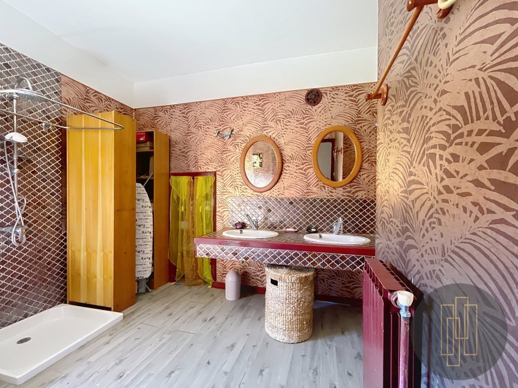 À l'étage, une grande mezzanine de 35 m² surplombant le séjour crée une ambiance chaleureuse et ouverte. Elle mène à un espace polyvalent (salon ou chambre d'appoint), une salle d'eau, ainsi qu'un solarium, offrant un potentiel d'aménagement intéressant selon vos projets (chambres supplémentaires, bureau, espace détente…)