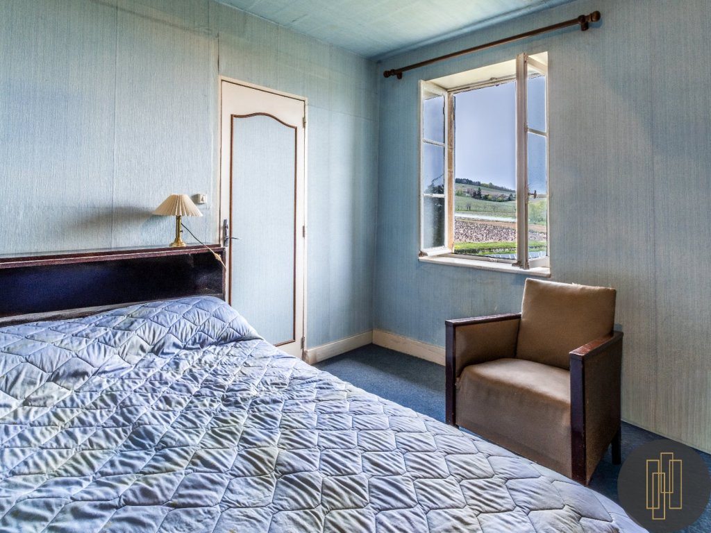 L'étage propose quatre chambres spacieuses, chacune d'environ 20 m², bénéficiant de belles hauteurs sous plafond, de grandes fenêtres et de vues dégagées sur la campagne environnante.