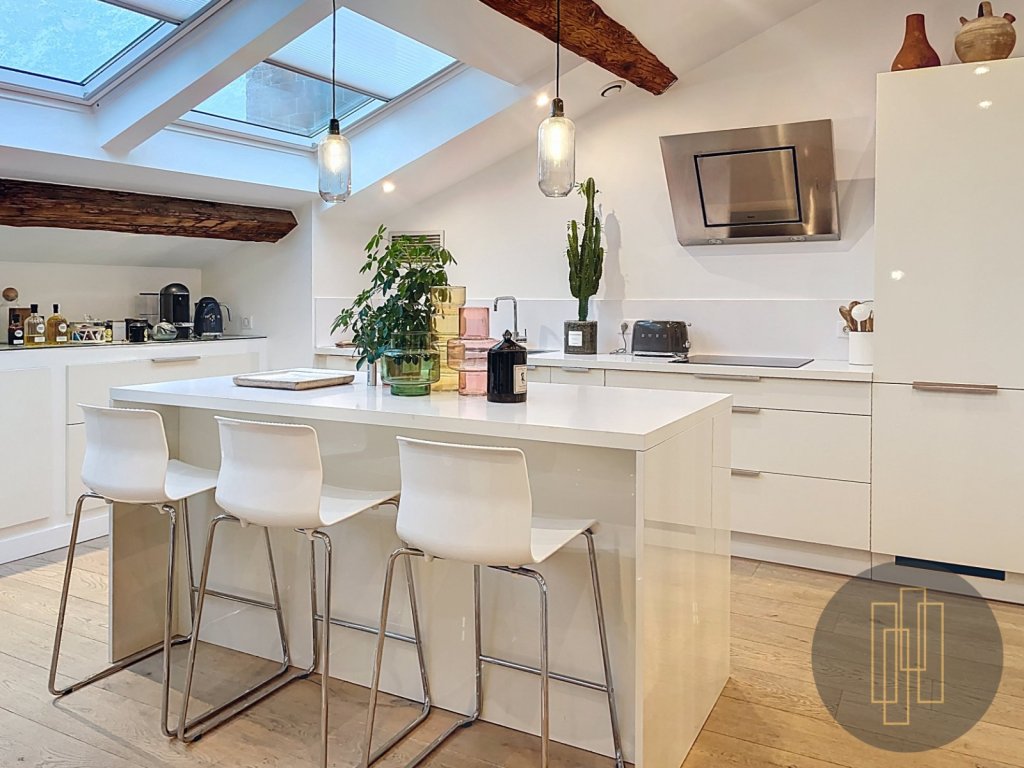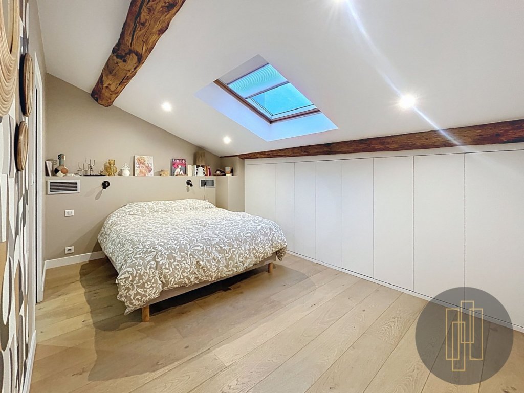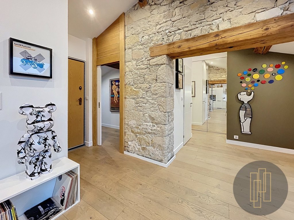 D'une surface de 91,8 m² Carrez (118 m² au sol), il offre des volumes généreux et une atmosphère chaleureuse, sublimée par de très belles prestations : parquet, pierres apparentes, rangements sur mesure, climatisation réversible, et une luminosité exceptionnelle grâce à ses nombreux velux.