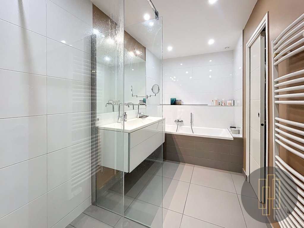 La partie nuit comprend deux chambres avec rangements intégrés, un dressing, un bureau / chambre bébé, une buanderie, une spacieuse salle de bains avec baignoire et douche, ainsi que des WC séparés.